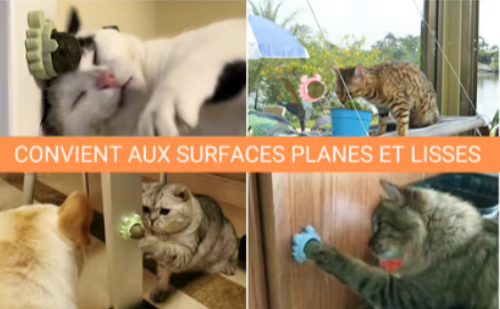 La balle à herbe à chat se fixe facilement aux portes, murs ou fenêtres.