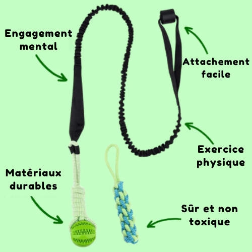 Absolument. Le BungeeToy est fabriqué à partir de matériaux non toxiques et sûrs pour les animaux. Il est exempt de produits chimiques nocifs pour garantir la sécurité de votre chien pendant le jeu.