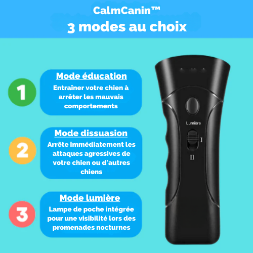 CalmCanin™ est la solution idéale ! D’une simple pression sur un bouton, il émet un son ultrasonique sûr qui stoppe immédiatement les aboiements et ramène le calme dans votre foyer.