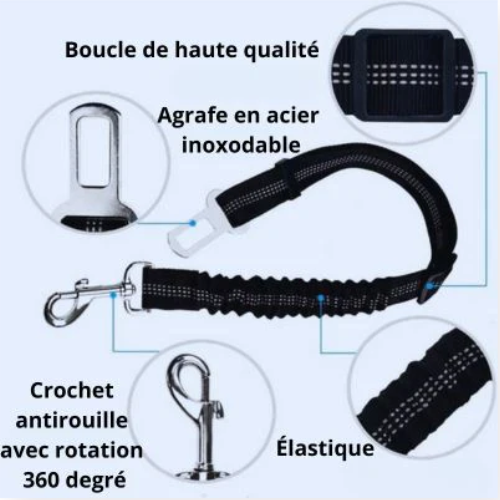 S'adapte à toutes les voitures, insérez l'agrafe dans l'attache de ceinture et attachez le crochet au collier de votre toutou.