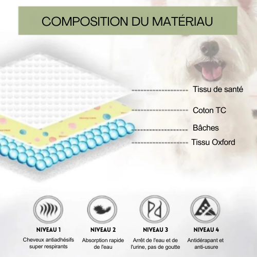 Cleanpet™ est équipé de couches absorbantes avancées qui capturent rapidement l’humidité et empêchent les fuites.