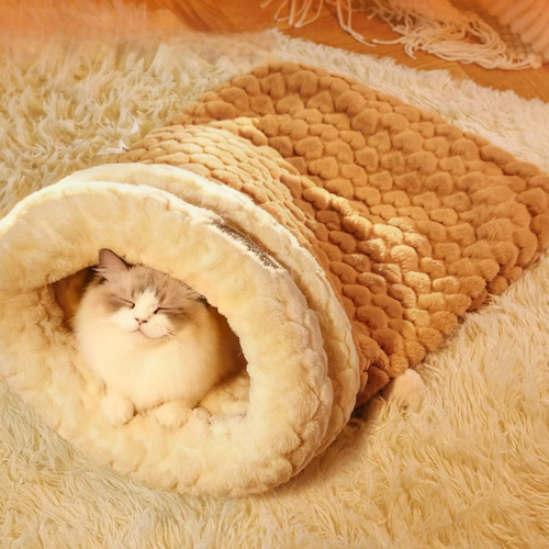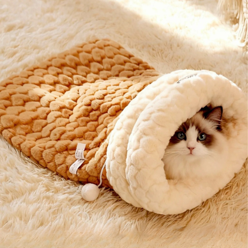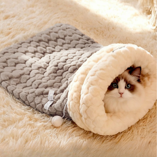 Le sac de couchage est fait de matériaux de haute qualité, conçus pour être durables et résister aux griffures légères. Il est idéal pour les chats qui aiment pétrir ou gratter avant de s’endormir.