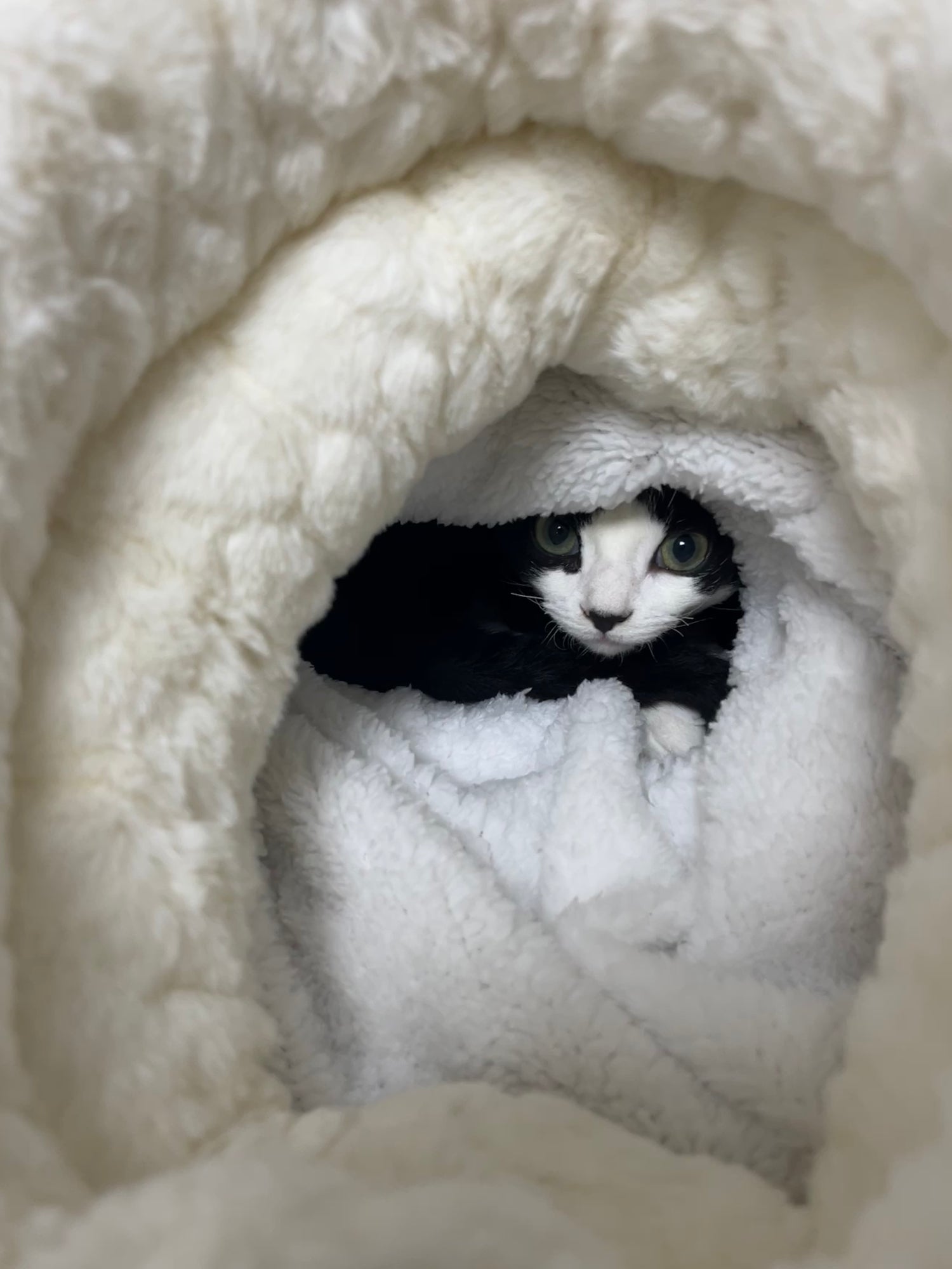“Il adore s’y enrouler en boule, surtout quand il fait un peu frais. Il adore ce cacher dans ca petite grotte. Je ne pensais pas que ca aurait autant d’effet sur lui, mais il y retourne tout le temps.”