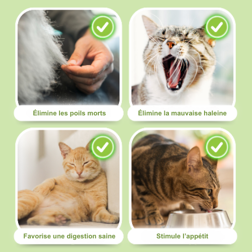 Il aide à éliminer les boules de poils, renforce l’hygiène bucco-dentaire et offre une saveur irrésistible que votre chat va adorer !