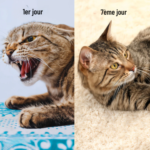 L’effet immédiat dure entre 15 et 30 minutes. C’est pendant ce laps de temps que le chat est attiré par l’objet pulvérisé : cela lui permet de s’y familiariser plus facilement. Une fois qu’il a adopté l’objet (lit, coussin, bol, etc.), il n’aura généralement plus besoin du spray pour continuer à l’utiliser naturellement.