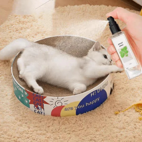 2. Pulvérisez sur un objet : lit, coussin, griffoir, jouet, arbre à chat, cadre de fenêtre, canapé, etc.