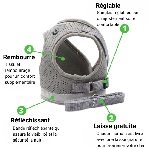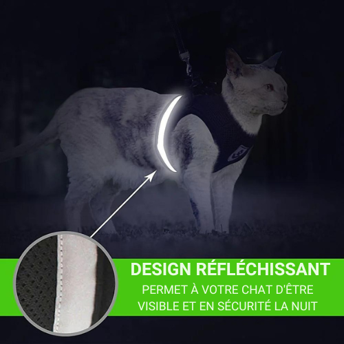 Équipé d'une bande réfléchissante, il garantit que votre chat reste visible dans l'obscurité, vous permettant de marcher en toute confiance, même la nuit.