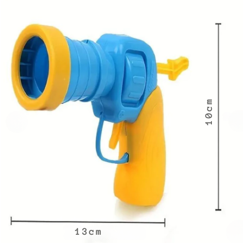 Dimensions : Pistolet - environ 15 cm de long, balles - 3 cm de diamètre