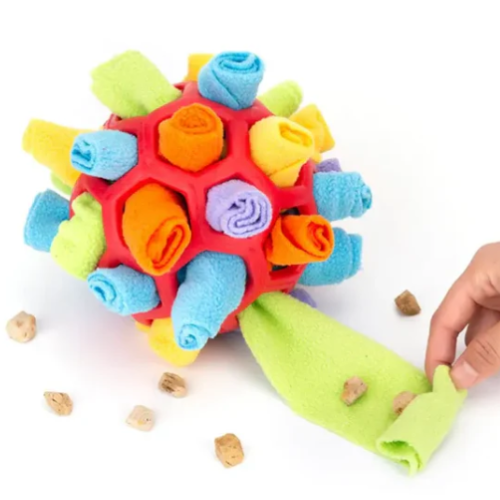 Offrez à votre chien une expérience de jeu améliorée grâce à SnuffleBall™, le jouet interactif ultime pour une stimulation mentale, une activité physique et une réduction des comportements destructeurs.