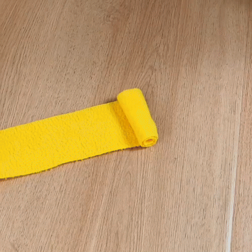 1) Cachez des friandises ou des croquettes entre les bandes de tissu polaire. Glissez-les bien à l’intérieur pour inciter votre chien à les chercher activement.